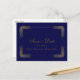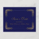 A customisable elegant gold and blue ornate lace save-the-date postcard.