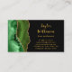 This elegant and glamourous business card features a dark green agate marble background with faux gold glitter accents. The text combines handwritten script and modern sans serif fonts for a classy and sophisticated look. The sequins and glitter texture creates the perfect blend of chic and grunge.