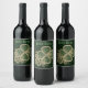Elegant Gold and Green Clover Brooch Wine Label