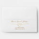 Set the tone for your special day with this elegant navy blue 5x7 wedding envelope, featuring a minimalist design and delicate gold rope heart. Adorned with simple calligraphy and a personalised return address, this timeless envelope adds a touch of romance and sophistication to your wedding invitation suite. A chic and refined way to invite guests to celebrate your love.