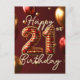 Imagine receiving a card where every detail mirrors the spirit of the milestone: Bold, shimmering gold and red stripes radiate opulence and festivity, making the number “21” the crown jewel of the design. Each gemstone accents the text like stars twinkling on a clear night, illuminating the elegance of this celebration. Lively balloons float around the centerpiece, echoing the cheer of cherished gatherings.