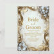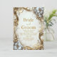 Make your wedding unforgettable with this luxurious wedding invitation featuring intricate gold and white floral ornaments framing a pristine ivory centre. The opulent design exudes sophistication, blending delicate flowers with flowing golden accents that gracefully adorn the borders, leaving the central area clear for personalised text. Perfect for couples seeking a refined, elegant aesthetic for their special day, this invitation sets the tone for a timeless celebration.