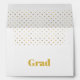 Elevate your graduation stationery with this elegant gold and white envelope, featuring bold gold typography that reads "Grad" on the front. The interior is lined with a chic gold polka dot pattern, adding a touch of sophistication and sparkle to your announcements, invitations, or thank you cards. Perfect for adding a polished, celebratory vibe to your graduation correspondence, this envelope is both stylish and versatile, complementing any modern graduation theme.