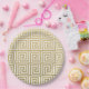 Elegant Gold and White Greek Key Pattern Paper Plate