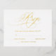 This elegant and modern gold foil and white wedding RSVP Card features a beautiful elegant RSVP in script calligraphy over a simple yet classic white background. The entire text in this RSVP card is in REAL GOLD FOIL.