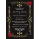 Glamourous Casino Royale and Art Deco 20s themed card design. It features vintage art deco style, a Roaring 1920's old Hollywood faux gold frame, playing cards suits (simulating playing cards), on gold black Art Deco pattern background. Special wording are used as in poker game. On the back faux gold Art Deco pattern, QR code and initials between playing cards suits. Use Personalise tool to add your information. For more, visit please, my Glam Roaring 20's Wedding Collection.