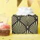 Beautifully elegant and sophisticated, this wrapping paper design features an art deco inspired fan pattern in gold over a contrasting black background. The scale of this pattern is rather large and makes a dramatic wrapping paper choice for those special gifts.