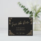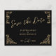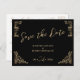 Announce your upcoming wedding in style with these elegant gold Art Deco and calligraphy on black Save the Date postcards. Featuring a stunning gold Art Deco design paired with elegant calligraphy, these postcards are perfect for couples who want to add a touch of glamour to their wedding invitations. Made with high-quality materials and printed on premium cardstock, these postcards are sure to impress your guests. Order now and get ready to make a statement with your wedding invitations.