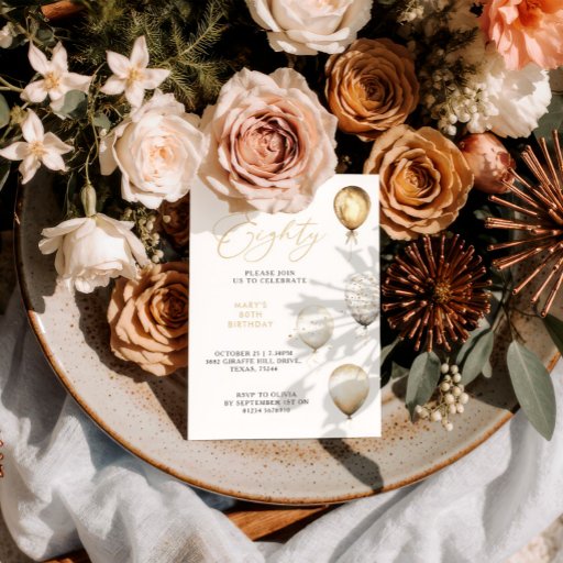 Elegant Gold Balloon 80th Birthday Party Invitation