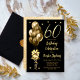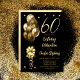 Elegant Gold Balloons on Black 60th Birthday Party Invitation