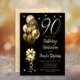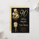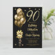 Elegant Gold Balloons on Black 90th Birthday Party Invitation