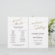 This elegant gold and black calligraphy folded program is perfect for a simple modern wedding. The neutral design features a minimalist card decorated with romantic and whimsical faux gold foil typography. Include the name of the bride and groom, the wedding date, quote, order of service, bridal party, reception timeline, dinner menu and special thanks.