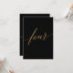 This elegant gold and black calligraphy table number four is perfect for a simple wedding. The neutral design features a minimalist card decorated with romantic and whimsical faux gold foil typography. The card prints on the front and back (double-sided). Other table numbers in the collection are sold separately.