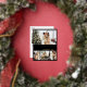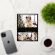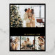 Elegant Calligraphy Minimalist Gold Foil Script Gold Black 4 Photo Collage Merry Christmas Holiday Card. This festive, mimimalist, whimsical four (4) photo holiday card template features a pretty photo collage and says „Merry Christmas”! The „Merry Christmas” greeting text is written in a beautiful hand lettered swirly swash-tail font type in gold on black colour background. On the reverse side with greeting text template with a little heart doodle on white and one horizontal photo template. Pretty greeting card for your family and friends in Christmas Holiday season.