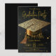 Elegant Gold Black Faux Glitter Cap Graduation Invitation