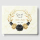 Elegant gold and black floral wreath against marble background botanical guest book.
