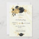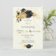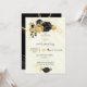 Elegant black and gold flowers against white and gold marble background birthday party invitation