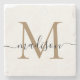 Elegant Gold Black Monogram Feminine Script Name Stone Coaster