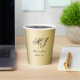 These elegant custom wedding paper cups feature a elegant black calligraphy for your names and wedding date to personalise on a faux gold background. Best of wishes for your wedding and marriage! Designed by Susan Coffey.