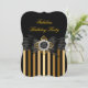 Elegant Gold Black Pearl Bow Stripe Birthday Party Invitation