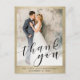Thank your wedding guests in style with this elegant custom photo thank you postcard. This typography design template features your picture on the front bordered in faux gold with the words "Thank You" and your names with wedding date to personalise. The back of the postcard has a custom message and signature on a faux gold background. Designed by artist Susan Coffey.