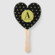 Elegant Gold & Black Star Pattern Monogram Hand Fan