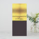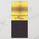 Elegant, glamourous and sophisticated custom menu cards for your special day . The top part of this beautiful stunning menu card is of a pretty gold gradient printed background image and the lower part is of a textured black leather effect background, in the centre is a glamourous gold strip with a black border with your event title. The reverse has thegold background printed image only and your menu details. This is a modern, romantic and fashionable design suitable for weddings for any season, Spring, Summer, Autumn or Winter.. All text is fully customisable to meet your requirements. PLEASE NOTE: All products on Zazzle have flat printed images.
