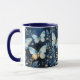 Elegant Gold Blue Butterfly Pattern on Navy Mug