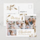 Elegant Gold Botanical 4 Photo Collage Christmas Postcard