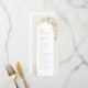 These elegant modern wedding menus feature faux gold botanical floral illustrations, frame a delicate gold line in an arch shape. Your event details appears in romantic script and sophisticated serif font. Great for romantic garden wedding, and modern luxe wedding.