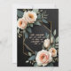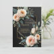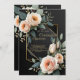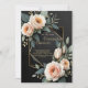 Elegant colour and geometric design make this invitation stunning. This design features a dramatic black backgroun, a lovely floral botanical line drawn sketch, and custom typography with a geometric border on the front. The reverse side features a lovely floral tapestry.