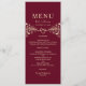 Add a luxurious touch to your reception with this elegant burgundy and gold floral wedding menu card. Featuring delicate botanical accents, modern script, and customisable meal details, it’s the perfect finishing detail for your fall or winter celebration.