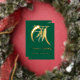 This luxury gold foil on hunter green Season's Greetings card looks elegant with the contrast between gold botanicals against the green background. The gold Eucalyptus (gum) leaf watercolor is simple and beautiful. The 'Season's Greeting" message can be customised to any greeting that fits with your preferences and traditions. On the back you can add your own message, signatures and your logo. A matching envelope in hunter green with the Eucalyptus leaf design will complete your mailing in style.