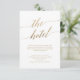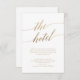 This elegant gold calligraphy hotel enclosure card is perfect for a simple wedding. The neutral design features a minimalist card decorated with romantic and whimsical faux gold foil typography.