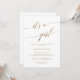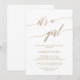 This elegant gold calligraphy it's a girl baby shower invitation card is perfect for a simple baby shower. The neutral design features a minimalist card decorated with romantic and whimsical faux gold foil typography.