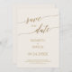 This elegant gold calligraphy ivory save the date card is perfect for a simple wedding. The neutral design features a minimalist card decorated with romantic and whimsical faux gold foil typography.