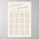 This elegant gold calligraphy ivory seating chart poster is perfect for a simple wedding. The neutral design features a minimalist sign decorated with romantic and whimsical faux gold foil typography. This wedding poster includes enough room for up to 16 tables (160 guests). In addition to the placement of each guest, personalise this sign with the names of the bride and groom and the wedding date. This seating chart can be used for a wedding reception or any special event.