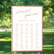 This elegant gold calligraphy large (200+) seating chart poster is perfect for an elegant wedding. The design features romantic and whimsical faux gold foil typography. This sign can be used to organise your guests alphabetically or by table number. This wedding poster includes enough room for up to about 210 guests. Make room for more (or less) guests by clicking the "customise" button and decrease or increase the size of the font. In addition to the placement of each guest, personalise this sign with the names of the bride and groom and the wedding date.