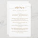 Gold Calligraphy Classic & Elegant Wedding Menu. An elegant design in gold, black and white or any background colour you choose. Just click the customise further link, shown under the text personalisation area on the right, and choose your custom colour background. This sign poster template makes it fast and easy to create stunning additions to your wedding décor. Signs can be decreased, there are many sizes to choose from, as well as options for custom framing and matting.
