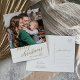 This elegant gold calligraphy Merry Christmas photo postcard makes the perfect modern holiday greeting. The neutral design features a minimalist holiday card decorated with romantic and whimsical faux gold foil typography. Add your family Christmas picture and personalise the postcard with your family name, year, personal greeting, and names.