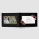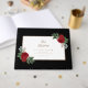 Beautiful watercolor floral sprays... with gorgeous red peonies, lush greenery, eucalyptus, and baby's breath... surround a rectangle frame with your details in gold typography script. A wedding photo of your choice is featured on the back. The rich reds and greens in the florals set off the elegant black, white, and gold backgrounds. Add your own photo and details by following the "Personalise this" link. If you would like assistance, please don't hesitate to reach out to me via message here on Zazzle or email. susanmingaydesigns@gmail.com