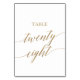 Elegant Gold Calligraphy Table Number Twenty Eight