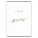 This elegant gold calligraphy table seven table number is perfect for a simple wedding. The neutral design features a minimalist card decorated with romantic and whimsical faux gold foil typography. The card prints on the front and back (double-sided). Other table numbers in the collection are sold separately.