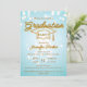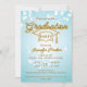 Celebrate your graduate's shining moment with this elegant Graduation Party Invitation, crafted to bring their achievement into the spotlight. The design features a gold graduation cap set on a light blue background filled with blurred lights.