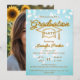 Elegant Gold Cap on Blue Photo Graduation Party Invitation