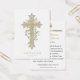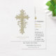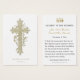 Featuring a beautiful traditional Catholic image a Gold Cross with two gold wedding rings and the hearts of Jesus, Mary, and Joseph on the top of the back. A prayer is also on the back for the bride and groom. All text and fonts can be modified.