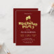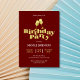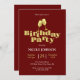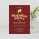 Modern birthday invitation features gold champagne with bold typography text "birthday party" on burgundy background. Personalise the birthday party invites by adding your name and party details.