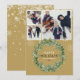 Elegant Gold Christmas 3 Photo Greenery Wreath Holiday Card