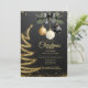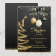 Host an unforgettable holiday celebration with this luxurious invitation featuring ornate gold and white ornaments, pine greenery accented with black berries, and an elegant black bow set against a sophisticated dark background. Sparkling gold accents and festive decorations create an upscale ambiance, perfect for formal Christmas gatherings, corporate events, or elegant family celebrations.