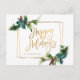 Elegant Christmas Holly Pine Frame Photo Greeting Postcard.